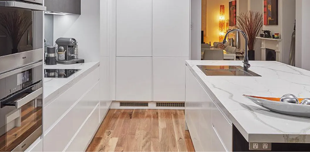 Yes. We supply EGGER benchtops manufactured using genuine high-pressure laminate (HPL). They are resistant to stains, burns, UV light, heat, steam and impact, and come in multiple decor options. Excess length is cut to suit your base cabinets.