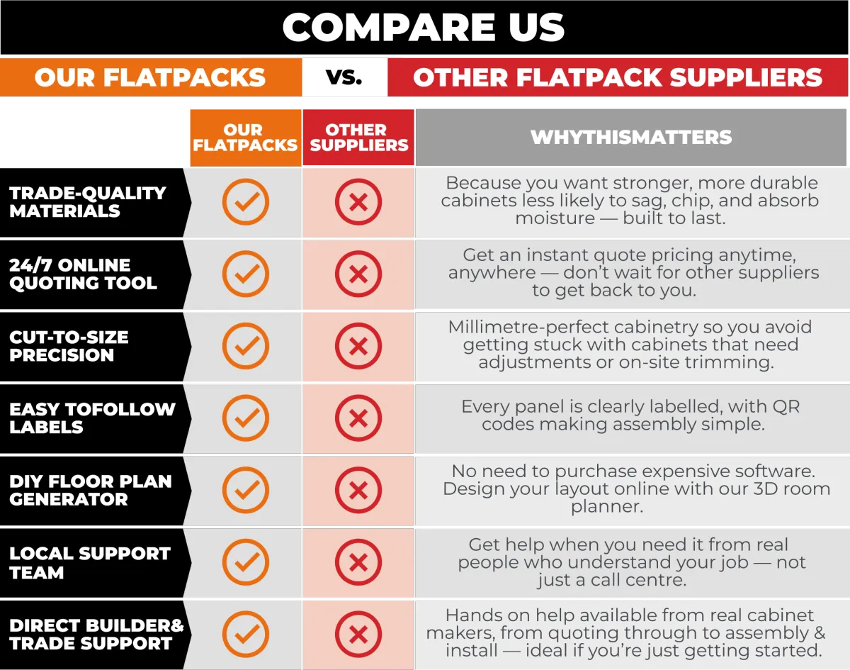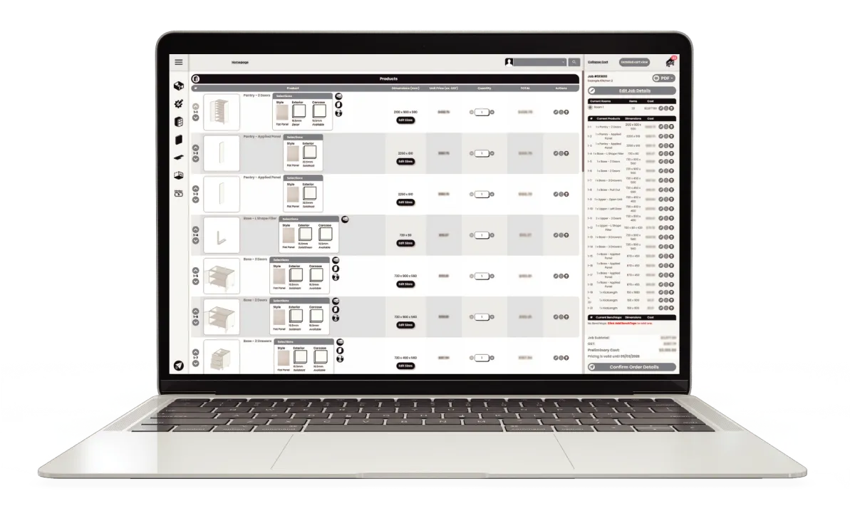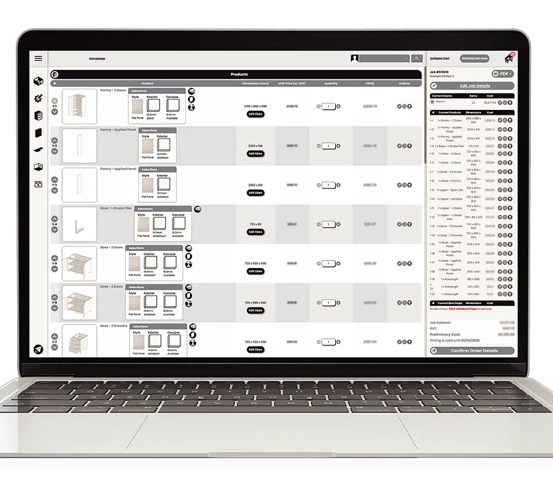 Pack It Flat replaces all of that with a fast, intuitive system that gives you instant, accurate pricing as you build. No back-and-forth with suppliers. Just millimetre-perfect cabinetry, quoted and ready to order - in minutes, not hours. Every job. Every time.